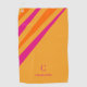 Kühle Retro Vintage moderne Streifen Custom Golf Handtuch für Golfschläger und Golfliebhaber. Streifen in Orange, Rosa und Senfgelb. Personalisieren Sie diese stilvolle moderne Schrift Typografie .
