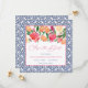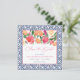 Lebhafte Aquarellfloralen mit Kumquats und Zitrusschnitzen werden mit einem dunkelblauen und weißen Kachelrand gepaart und Muster umgekehrt auf diesen "Save The Date"-Karten.