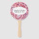 Dieser handgeblasene Fächer hat ein fett rosa-weißes Paisley-Design mit Tränenfallformen und dunklen Blume. Passen Sie Ihren Namen und Ihre Daten im weißen Oval mit der Vorlage an.