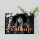 Stilvolle Abschlussfeier Einladungen mit dem waagerechten Foto des Absolventen mit "Absolvent" in fett gedruckter Rose Goldfolienschrift. Personalisieren Sie die Einladung zur Foto-Graduiertenparty, indem Sie den Namen, das Abschluss-Jahr und die Schule hinzufügen. Die Rose Gold-Folie Graduierungsparty lädt zur Rückseite, um Ihre Party-Details anzeigen.