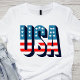 Dieser 4. Juli T - Shirt ist eine kühne und patriotische Feier des amerikanischen Stolzes, perfekt für Feierlichkeiten zum Unabhängigkeitstag. Das Design enthält das Wort "USA" in fett gedruckten Großbuchstaben, die so gestaltet sind, dass sie der amerikanischen Flagge ähneln. Die obere Hälfte jedes Buchstaben ist mit einem blauen Hintergrund mit weißen Sternen geschmückt, während die untere Hälfte die klassischen roten und weißen Streifen zeigt und so eine auffallende und kohärente Darstellung der Flagge schafft. Was diesen T - Shirt wirklich besonders macht, ist seine Fähigkeit, den Geist des 4. Juli in einer stilvollen und modernen Art und Weise zu verkörpern. Die Verwendung der Elemente der amerikanischen Fahne in der Typografie ist sowohl kreativ als auch auffällig, was sie zu einem herausragenden Stück für jede Feier macht. Bei diesem T - Shirt geht es nicht nur um Stil; es geht darum, an einem Tag, der für alle Amerikaner von großer Bedeutung ist, Nationalstolz und Einheit zum Ausdruck zu bringen. Egal, ob Sie eine Parade besuchen, einen Grill oder ein Feuerwerk sehen, dieser 4. Juli T - Shirt ist die perfekte Kleidung, um Ihren Patriotismus zu zeigen. Das einzigartige Design und die lebhaften Farben machen es zu einer unvergesslichen und sinnvollen Ergänzung Ihres Schrankes, um Ihnen den Unabhängigkeitstag mit Stolz und Stil zu feiern.