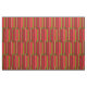 Dieses schlichte und dennoch dekorative moderne Stoffdesign zeichnet sich durch ein farbenfrohes Retro-abstraktes Muster fett geometrischer Streifen in den Farben Rot, Orange, Braun, Olivgrün, Schwarz und Bräune aus.