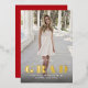 Fett Typ Abschluss Full Foto Gold Foil Pressed Einladung. Diese moderne Vollbild-Karte mit fett formatiertem GRAD in einer Goldfolie. Die Rückseite ist rot. Fügen Sie ein zweites Foto auf der Rückseite mit den Details der Graduierungsparty hinzu. Für Anfragen über kundenspezifische Designänderungen des unabhängigen Designers senden Sie bitte eine E-Mail an paula@labellarue.com BEVOR Sie Ihre Bestellung anpassen oder anpassen.