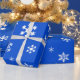 Fett weiße Schneeflocken im hellen Royal Blue Holi Geschenkpapier
