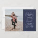 Mit einem fett formatierten Datum in marineblau und viel Platz für den eigenen Text mit all Ihren Hochzeitsdetails, hat diese Save the Date Karte auch einen Platz für einen Single vertikal Verlobung Foto. Die Rückseite ist eine koordinierende marineblau Farbe mit Streifen.