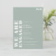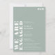 Feines, weißes, staubgrünes Hochzeitskonzert mit "Wir sind verlobt" in überdimensionalem, fett-weißem Schriftart