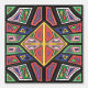 Ein kühnes, handgezeichnetes geometrisches Muster, inspiriert von alten Symbolen und Stammesmarkierungen. Das Design zeigt diamantzentrierte Motive, die in einem strukturierten Raster nach außen strahlen, mit unregelmäßiger Linienführung.