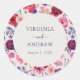 Kühne farbenfrohe florale Hochzeitsticker. Fügen Sie mit diesem Hochzeitsaufkleber eine personalisierte Touch zu Ihren Gastgeschenke Hochzeiten, Schreibwaren oder Dekorationen hinzu, die die Namen der Braut und des Bräutigams sowie das Hochzeitsdatum enthält. Die lebhaften, juwelenfarbenen Blumen - Rose, Anemonen, Kosmos, Gänseblümchen und Delphinium mit Eukalyptus-Akzenten - schaffen ein romantisches Design, das für jede Jahreszeit perfekt ist. Egal ob Sie eine gemütliche Herbst- oder Winterhochzeit oder eine charmante Frühlings- oder Sommergarten-Affäre planen, dieser individuell gestaltbare Aufkleber Krawatte Ihr Thema mühelos zusammen. Es fügt Ihrem Hochzeitstag ein gedankenvolles, elegantes Detail hinzu. HINWEIS: Der Text ist marineblau mit Elfenbeinhintergrund.