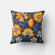 Diese atemberaubende Blumenillustrierung weist übergroße, Retro-inspiriert Blume in Orange-, Gelb-, Blau- und Cremetönen auf, die auf einem dunklen Hintergrund dargestellt sind. Die stilisierten, Cartoon-ähnlichen Blüten schaffen ein spielerisches, aber kühnes Design