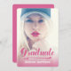 rosa Fett Retro 2| Einladung zur Graduierung für 2014. Design von Elke Clarke © für MonogramGallery. Auf der Vorderseite wird ein rosa Textskript-Schriftart-Overlay mit dem Wort "Graduate" mit einem rosa Ober-Effekt gedruckt. Fügen Sie Ihren Einladungstext auf der Rückseite der Karte mit einem modernen weißen Schriftart auf rosa Hintergrundfarbe hinzu. Andere Farben sind verfügbar.