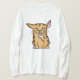 Fette Cartoon Tabbattkatze mit rosa Nase und großen Ohren lecken seine kleine weiße Pfote. Großartiges Geschenk für den Katzenliebhaber! Originelle Cartoon-Kunst von Taylor Addams.