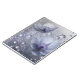 Delikate Kosmos-Blume mit dünnen, durchsichtigen Blütenblättern, die mit Tautropfen verziert sind, sind Set vor weichem Hintergrund.