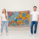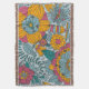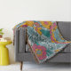 Hell, fröhlich, kühl, skurril, künstlerisch am besten beschreibt dieses lustige Werfer-Decke mit großen Blume von Orange, Blau und Rosa mit aquamarinen Blätter und Weinreben.