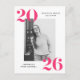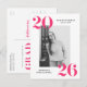 Wir laden Sie ein, den Absolvent mit unserer modernen mutigen 2022 Abschlussfeier Postkarten zu feiern. Die Postkarten der Stilabsolventen zeigen das Foto des Absolventen in Weiß, 2022 in fett rosa Buchstaben oben links und unten rechts. Personalisieren Sie die Front der Foto Graduation Party lädt durch das Hinzufügen des Graduiertennamens und der Schule. Die Postkarte kehrt um, um Ihre Rücksendeadresse und Graduiertengruppendetails anzuzeigen.
