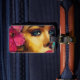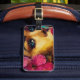 Das mutige und lebendige künstlerische Portrait zeigt den fesselnden Blick einer Frau mit auffallend blauen Augen und lebhaften, rosa Hibiskus-Blumenakzenten. Die Farbspritzen im Hintergrund bringen eine abstrakte, moderne Drehung. Dieses Bild verströmt Emotion und Kreativität, perfekt für diejenigen, die ausdrucksvolle und farbenfrohe Kunstwerke schätzen. Dieses Gepäckanhänger ist perfekt für Hawaii, Bridesmaids Geschenke oder ein Kleine Geschenk.
