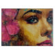 Das mutige und lebendige künstlerische Portrait zeigt den fesselnden Blick einer Frau mit auffallend blauen Augen und lebhaften, rosa Hibiskus-Blumenakzenten. Die Farbspritzen im Hintergrund bringen eine abstrakte, moderne Drehung. Dieses Bild verströmt Emotion und Kreativität, perfekt für diejenigen, die ausdrucksvolle und farbenfrohe Kunstwerke schätzen. Dieses Schneidebrett ist perfekt für ein Hochzeitsgeschenk, Muttertag oder ein Hausgeschenk für die Erwärmung.