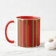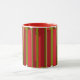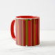Dieses schlichte und dennoch dekorative Tischset zeichnet sich durch ein buntes Retro-abstraktes Muster fett geometrischer Streifen in den Farben Rot, Orange, Braun, Olivgrün, Schwarz und Bräune aus.