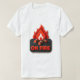 Ein kleines Lagerfeuer im Stil eines Paperskunstes in kräftigen Rot- und Orangetönen, mit einem knallroten Text auf einem schwarzen Rechteck darunter.