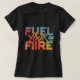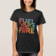 Dieses fette T - Shirt-Design enthält den Text "Fuel Your Fire" in einem lebendigen, vielfarbigen Farbverlauf. Jedes Wort ist eine andere feurige Farbe aus Orange, Gelb und Rot, die perfekt das Wesen der motivierend Botschaft einfängt.