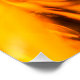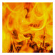 Nahaufnahme des Feuers aus brennendem Holz. Helle orange und gelbe Farben. Symbol für Energie, Wärme und Leidenschaft. Feuer des Lebens und Feuer der Liebe. Text - In Liebe - zu einigen Bekleidungsmodellen hinzugefügt.