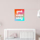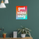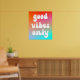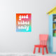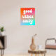 Ein groovy Retro "nur gute Vibes" Typografie-Design auf einem lebendigen orangefarbenen, heißen rosa und aqua blauen Farbverlauf auf einem Poster. Passen Sie die weiße Farbe der Sprichwort-Vektorgrafik an, wenn Sie möchten. Sie können den Verlauf löschen und einen Hintergrund im System verwenden. Zum Beispiel ein solider Hintergrund. Fügen Sie Ihren eigenen personalisierten Text oder Foto hinzu, um Ihre eigene Wandkunst zu erstellen.