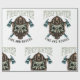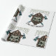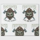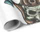 Ein beängstigendes Gesicht in einer Maske mit Feuerwehrfeuer und Rettung darum herum. Dieses Design ist wirklich effektiv bei diesem Umschlagpapier