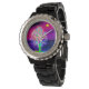 Schwarze Damen Email Strassuhr