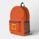 Inspiriert von japanischen Wellenmustern, Seigaiha und der elementaren Magie in Fantasiewelten repräsentiert dieses Design Feuer, mit Rot, Orangen und Gelb in Form von Flammen, um die Feuerbälle und andere mit dem Element verbundene Zauber zu verkörpern. Passen Sie die Initialen auf der Vordertasche dieses Rucksacks mit Ihrem eigenen Monogramm an, um dieses Zubehör einzigartig zu machen.