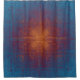 Ein wunderschönes, glänzendes, zentrisches Design mit wirbelnden griechischen Säulenmotiven und symmetrischen Balken, die von der Mitte ausstrahlen und von feurorangen durch tiefroyal lila bis hin zu einem leichten Indigoblau brennen.