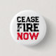 Cease Fire Jetzt weiß rot schwarz bedrückte Grunge Typografie Anti-Kriegs-Button-Taste. Schwarz und Rot bedrückte fette Typografie auf weißem Hintergrund. Nahost/Gaza-Konflikt