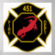 Feuermänner Logo Fahrenheit 451 Schwarz Gold und Rot mit weißem Hintergrund Poster Anime Cartoon Comic Fiktion Manga