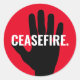 Waffenstillstand rot-schwarz Hand fett-benutzerdefinierte Textaufkleber. Weißer Text, schwarze Hand, roter Hintergrund. Vollständig anpassbarer Text. Nahost/Gaza-Konflikt