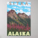 Fireweed & Mountains - Sitka, Alaska - Vintage Travel Poster wurde im Jahr 2007 gegründet. Dieses Bild zeigt Szenen aus Sitka, AK.