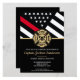 Dieses Design ist mit einer Feuerwehrflagge mit schwarz-weißen Streifen und einem dünnen roten Streifen versehen. "Glückwunsch" und das Abzeichen eines Feuerwehrmanns sitzen über allen Einzelheiten des Party für den pensionierten Feuerwehrmann, Leutnant oder das Party für das Ruhestand. Die Einladungen können auch für einen Feuerwehrakademiker angepasst werden.