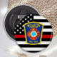 Thin Red Line Feuer Abteilung Flaschenöffner - Amerikanische Flagge in Firefighter Flag Farben, moderne schwarz und rot Design . Passen Sie Ihre Wünsche mit Ihrem Department Logo an. Dieser personalisierte Feuerwehrflaschenöffner eignet sich ideal für Feuerwehren und Feuerwehren, Werbegedanken oder Geschenke für Ihre Feuerwehrleute. COPYRIGHT © 2020 Judy Burrows, Black Dog Art - Alle Rechte vorbehalten. Brandabteilung - Benutzerdefiniertes Logo Feuerwehrflaschenöffner