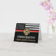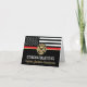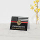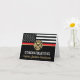 Dieses Design ist mit einer Feuerwehrflagge mit schwarz-weißen Streifen und einem dünnen roten Streifen versehen. "Glückwunsch" und das Abzeichen eines Feuerwehrmanns sitzen über dem Namen des schließend oder pensionierten Feuerwehrmanns, Leutnants oder Chefs. Feiern Sie stilvoll!