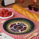 Feuerwehr-Logo schwarzes und rosa Abzeichen Pappteller