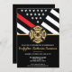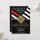 Feiern Sie mit dieser individuell gestaltbaren Feuerwehrabschlussfeier die hart erarbeitete Leistung Ihres Feuerwehrmanns. Mit einem kühnen Feuerwehrflaggendesign mit schwarz-weißen Streifen, einer symbolisch dünnen roten Linie und einem klassischen Abzeichen der Goldfeuerwehr würdigt diese Einladung den Mut und die Hingabe Ihres Absolventen. Diese Einladung ist perfekt für Feuerakademie-Abschlussfeiern, Feuerwehrschülerfeiern oder die Ehrung einer neuen Karriere im Feuerwehrkampf geeignet und unterstreicht ihren Service und Heldentum. Personalisieren Sie Ihre Daten mit Namen, Abschluss, Uhrzeit und Party Ihres Feuerwehrmanns. Ideal für Party mit Feuerwehr, Feuerwehrfamilienfeiern und Abschlüsse der Feuerwehr.