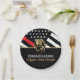 Dieses Design ist mit einer Feuerwehrflagge mit schwarz-weißen Streifen und einem dünnen roten Streifen versehen. "Glückwunsch" und ein Feuerwehrhelm sitzen über dem Namen des geschlossen Feuerwehrmanns. Dieses Design eignet sich auch hervorragend für pensionierte Feuerwehrleute, Leutnants oder Häuptlinge. Feiern Sie stilvoll!