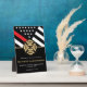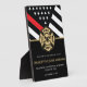 Dieses Design ist mit einer Feuerwehrflagge mit schwarz-weißen Streifen und einem dünnen roten Streifen versehen. "Glückwunsch" und das Abzeichen eines Feuerwehrmanns sitzen über dem Namen des geschlossen Feuerwehrmanns. Dieses Design eignet sich auch hervorragend für pensionierte Feuerwehrleute, Leutnants oder Häuptlinge. Feiern Sie stilvoll!