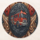 Feuerwehrfahrzeug auf Nachahmungsleder Runder Pappuntersetzer