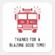 Feuerwehrfahrzeug | Motor Kindergeburtstag Danke Quadratischer Aufkleber