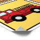 Vier Plätze mit einem Feuerwehrfahrzeug-Cartoon und den Worten "Ich mag Firetrucks!"