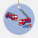 Whimsical Cartoon Art von zwei Feuerwehrfahrzeugen oder Motoren mit Hydranten und Leiter. digital von KLeighE von Hinterland Harmonys Whimsical Cartoon Art ™