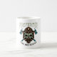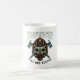 Ein beängstigendes Gesicht in einer Maske mit Feuerwehrfeuer und rettet es. Dieses Design sieht auf dieser Tasse wirklich effektiv aus