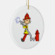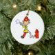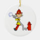 Feuerwehrfrau mit T - Shirt und Geschenken Keramik Ornament
