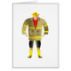 Die Illustration eines Feuerwehrmanns stand in seiner unangenehmen Uniform. Aus meiner Serie der Beruf. Bilder auf verschiedenen Geschenken und Produkten erhältlich.