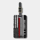 Ein individueller Name beunruhigte Gepäckumbau der amerikanischen Flagge der Art Feuerwehrmann angeredeten. Die dünne rote Linie, die über die Mitte läuft, ist Vertreter der Feuerwehrmannfachleute. Folgen Sie den Richtungen in den Sidebar, um Ihren Namen zu addieren und ihn unter die Flagge perfekt schauen zu lassen.
