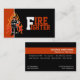 Feuerwehrmann/Feuerwehrauge, die Visitenkarten schwarz-rot-orange mit einem Feuerwehrmann in Flammen auf schwarz-rot-orange/grenadierfarbenem Hintergrund auffängt. Eine effektive Visitenkarte mit einem beruflichen Look. Einige Elemente mit freundlicher Genehmigung von vectorportal.com.
