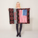 Patriotisches, rotes Weiß und blauer Sumpf-Schwertliliedecke für Feuerwehrmänner Aquarell schauen, amerikanische Flagge auf Weiß. Klassische feuerbekämpfende Ikone, Malteserkreuzschildmusterhintergrund. Auf Schwarzem das zu jeder möglicher Farbe geändert werden kann. Personalisierter Name in der roten Farbe mit Schatten auf einem grauen Bandstreifen. Einzigartiges Geschenk für Feuerwehrmänner.